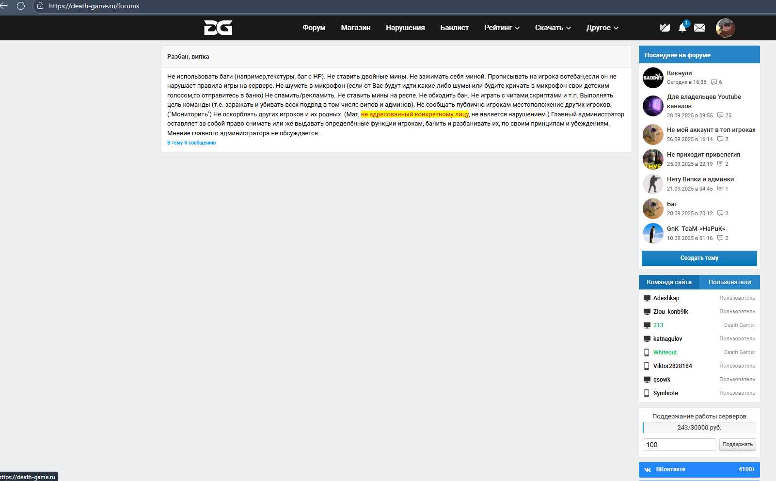 Игрок высказался про ситуацию которая с ним произошла на другом сервере.