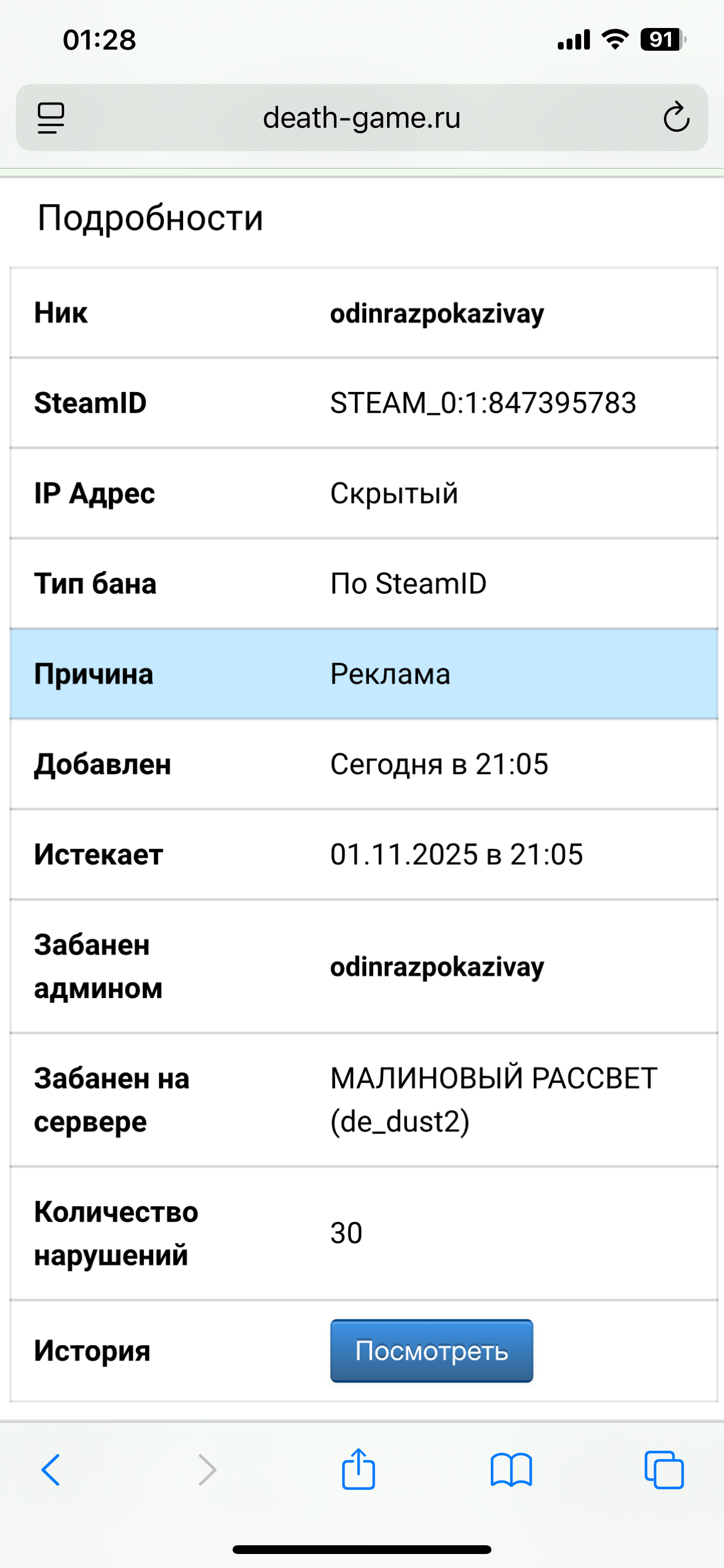 Добавил в жалобу скриншот, причина лишения "Самобан", теперь можно голосовать ЗА лишение.