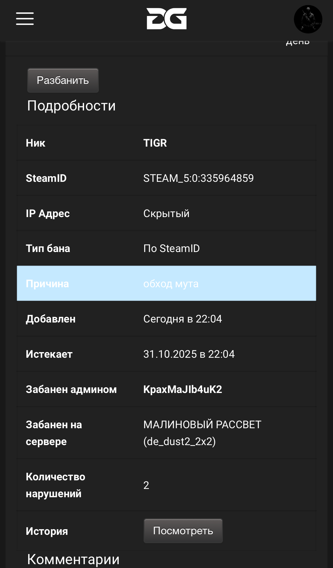 Да, кстати, если вдруг кто спросит, почему он снимал мут на первом скрине - он снимал свой же мут, чтоб изменить время мута. Демочка перезаписалась, но я могу записать видево консоли