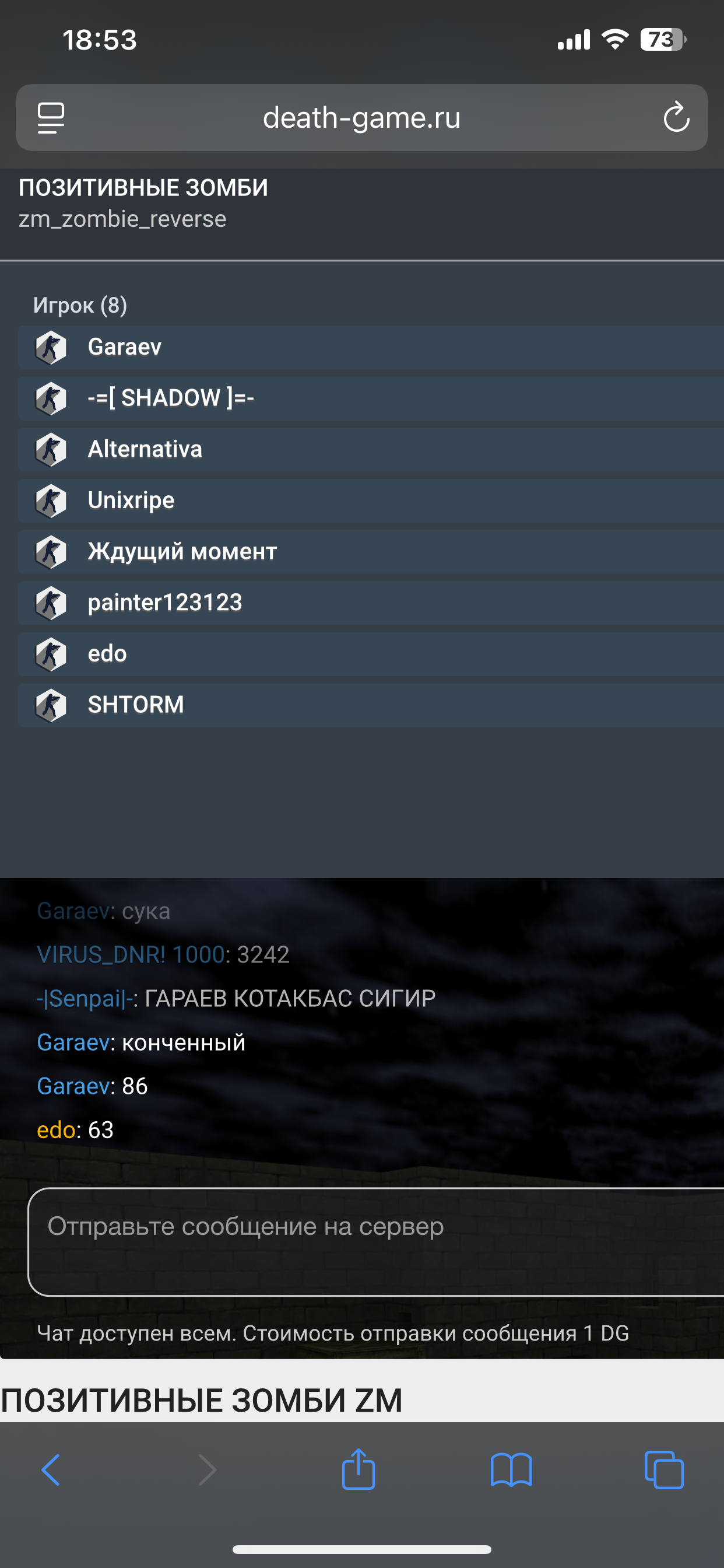 | Сервер: | ПОЗИТИВНЫЕ ЗОМБИ |