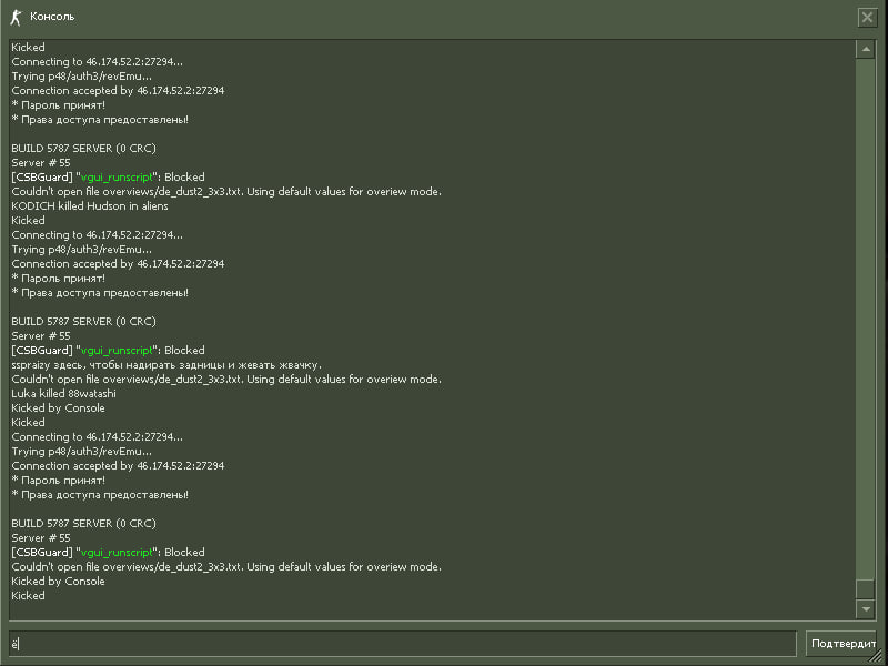 | каждую секунду кикает как зайду на сервер | |