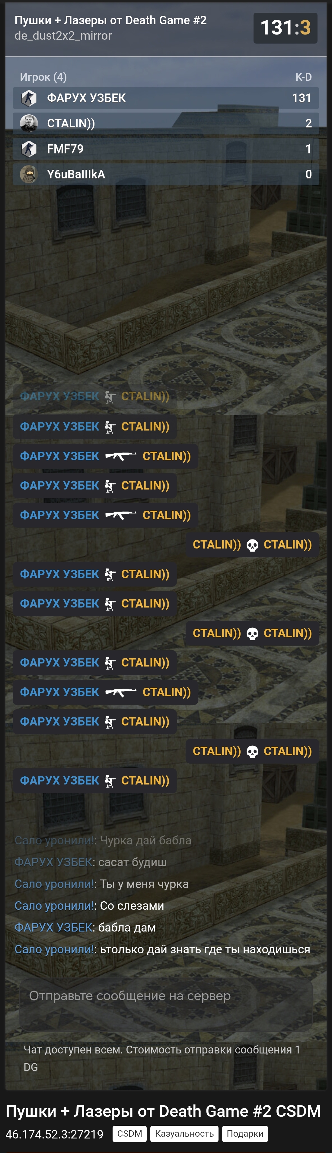 | Сервер: | Пушки + Лазеры от Death Game #2 |