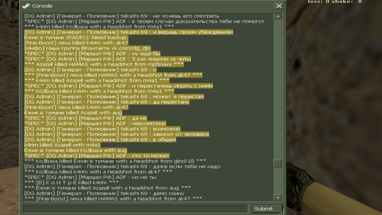 зачем сегодня игрока СЫР забанил, братишку своего читераста? Это ж норма по твоему играть с читами, а ты забанил его, следует извинится тебе перед ним получается, не хорошо как-то вышло. Ещё раз лучше, а то ж оно не в адеквате и по любому не поймёт, ТЕБЕ ДОВЕРИЯ НА СЕРВЕРЕ НЕ БУДЕТ НИКОГДА, ДЛЯ ТЕБЯ ПРОЩЕ И ЛУЧШЕ ИСЧЕЗНУТЬ В ТУМАНЕ!