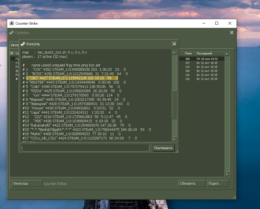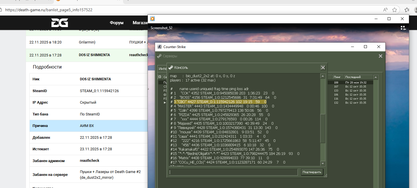 Димон это скрин айди игроков, сво это дос, далее заходишь в бан лист, смотришь бан доса, сверяешь айди, понимаешь что это дос, проверяешь на ютуб его эфиры. Всё