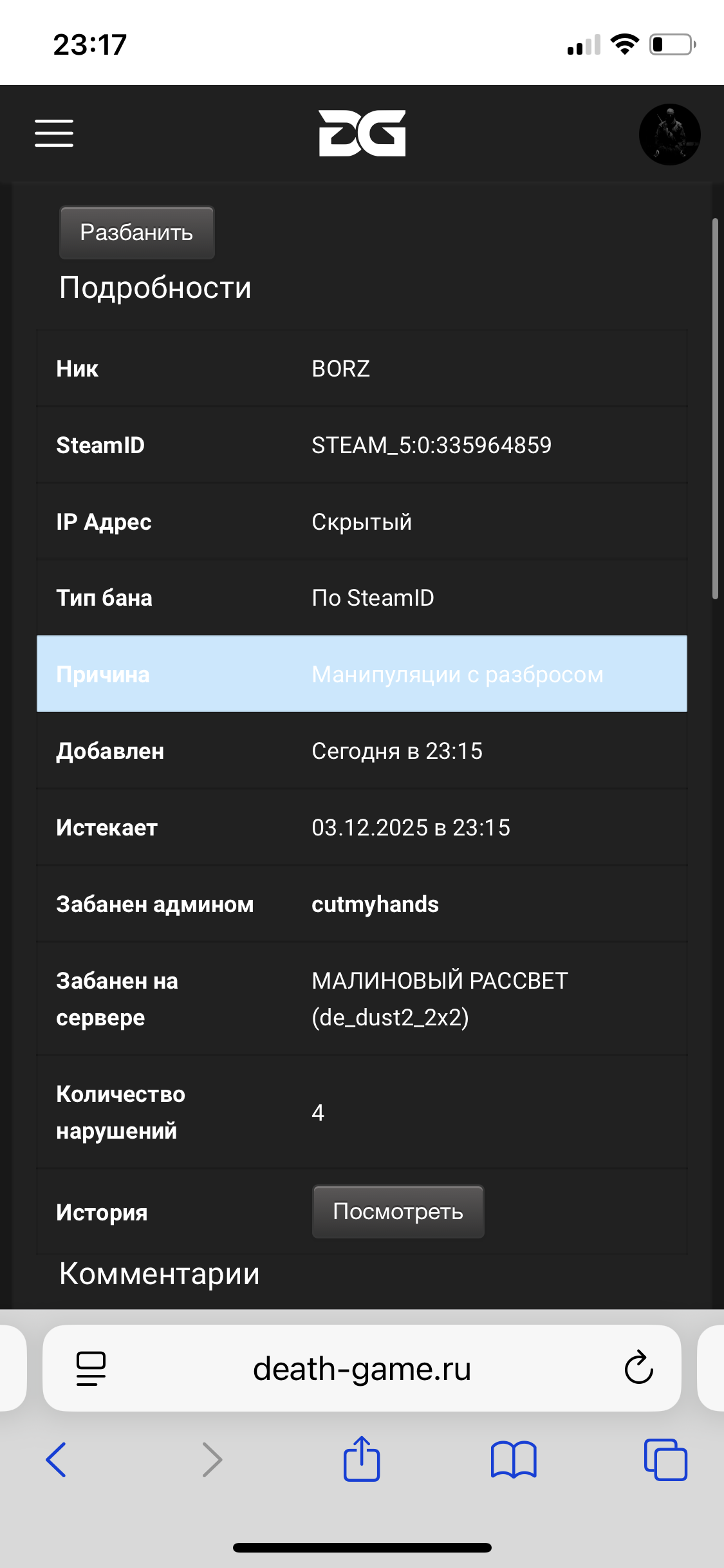 | Бан просто так) | |