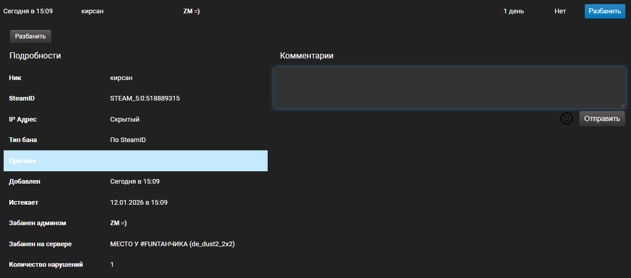 Я забанил одного только, остальные были в кике из за лагов, щас я не пойму, я без админки?