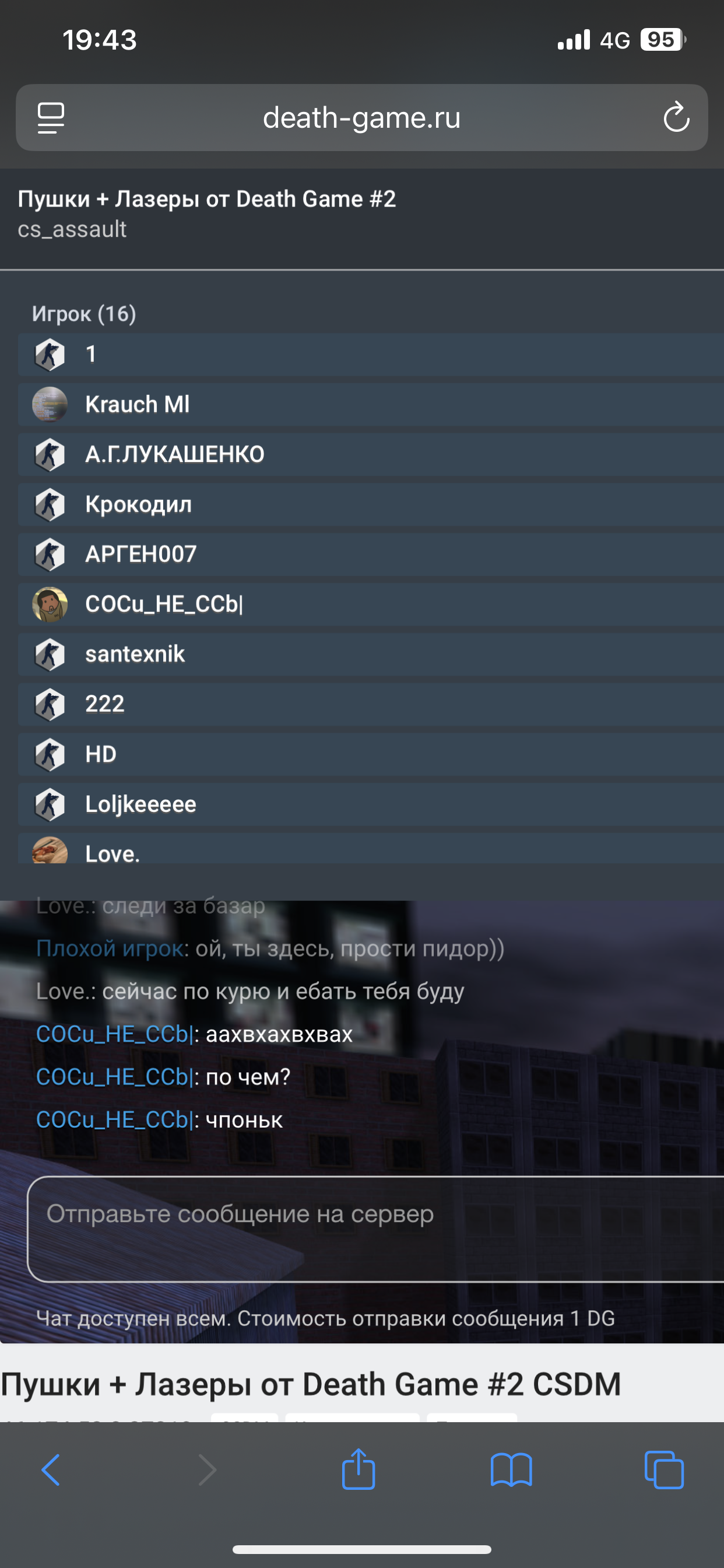 | Сервер: | Пушки + Лазеры от Death Game #2 |
