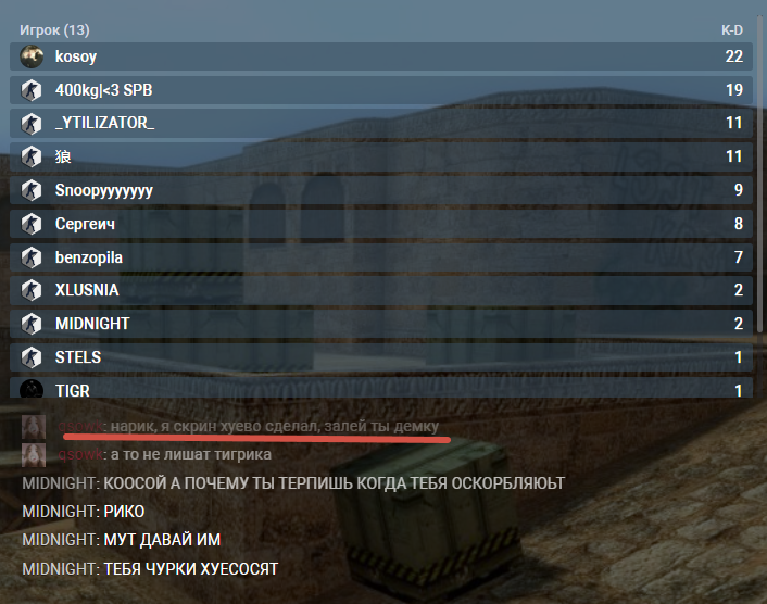 1. скрин полный, просто немного пролистнуто вниз изза специфики мониторинга на мобильниках. 2. если бы писал с сайта - был бы красный ник, а не серый = он в спектрах писал в игре. 3. название серва написано прям под чатом. 4. Доказательства в виде фотографий экрана (с камеры/телефона) МОГУТ БЫТЬ проигнорированы., но это не точно, тут так по кд лишали