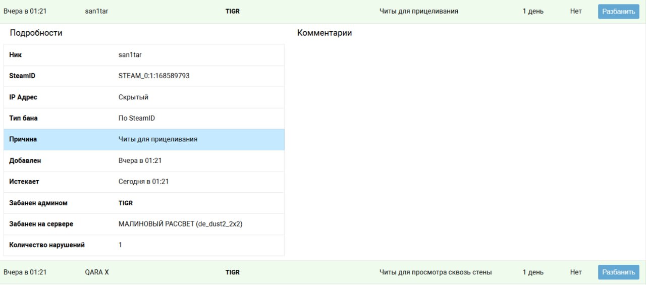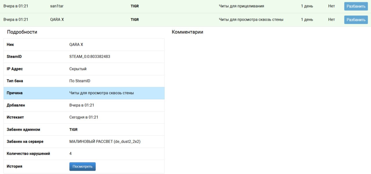 9lrsikor. У второго были читы тоже. Оба играли с читами попросил записать демо. Так и не отвечали а смеялись. И не записали. Я предупредил, сказал что забаню. Так что мне надо было сделать.