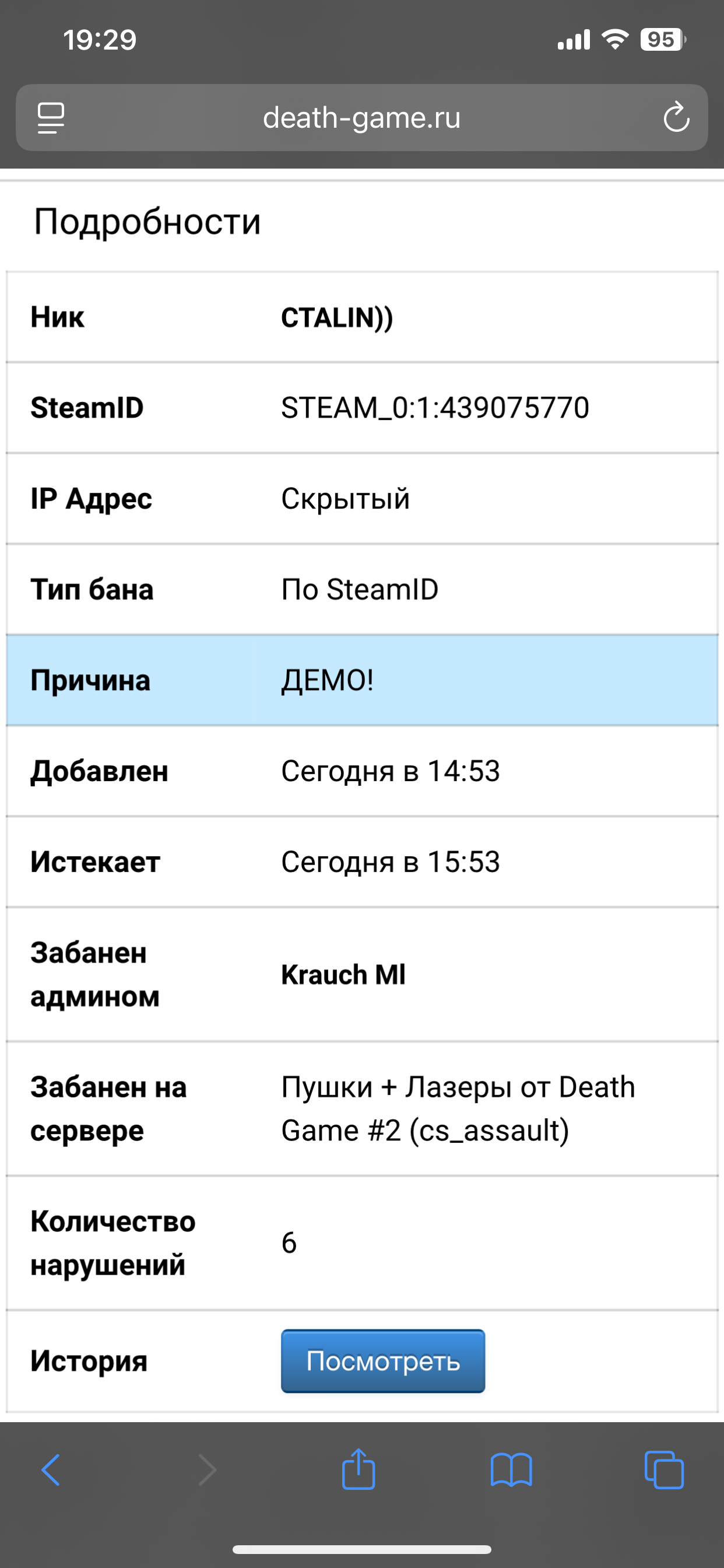 Почему зря, кидай сюда, в доказательства прям, похвастайся, за что забанили