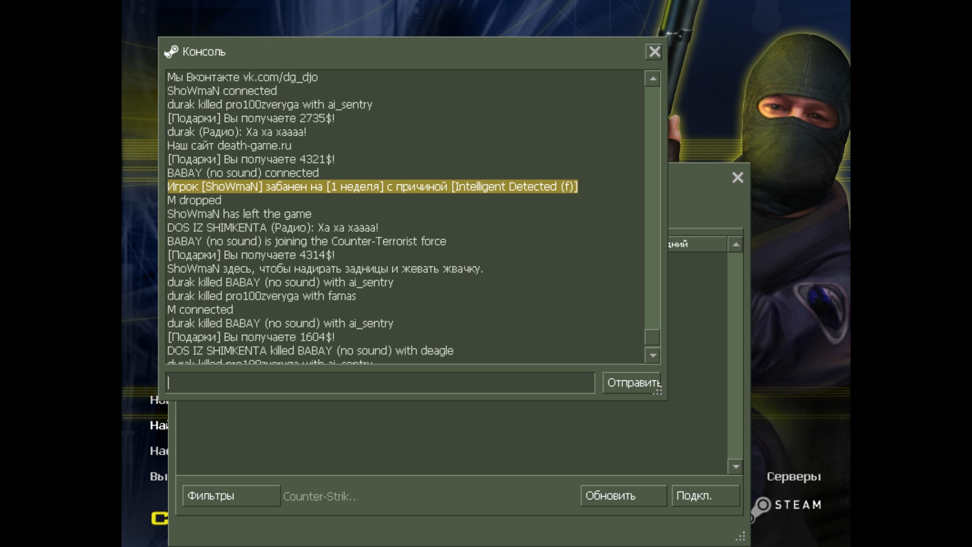 Dos, я даже после того, как удалил и заново установил CS 1.6, всё равно получаю этот бан. Что ты на это скажешь? Я ничего не трогал в CS 1.6 и не добавлял никакие конфиги.